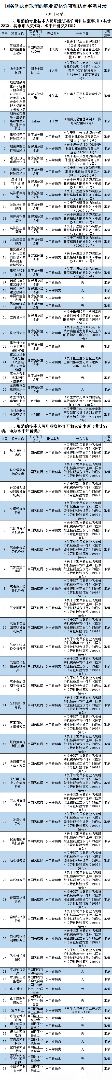 河南省教育網(wǎng)訊,近日國務(wù)院發(fā)布國發(fā)國發(fā)〔2015〕11號國務(wù)院關(guān)于取消和調(diào)整一批行政審批項目等事項的決定。文件說,經(jīng)研究論證,國務(wù)院決定,取消和下放90項行政審批項目,取消67項職業(yè)資格許可和認(rèn)定事項,取消10項評比達標(biāo)表彰項目,將21項工商登記前置審批事項改為后置審批,保留34項工商登記前置審批事項。同時,建議取消和下放18項依據(jù)有關(guān)法律設(shè)立的行政審批和職業(yè)資格許可認(rèn)定事項,將5項依據(jù)有關(guān)法律設(shè)立的工商登記前置審批事項改為后置審批,國務(wù)院將依照法定程序提請全國人民代表大會常務(wù)委員會修訂相關(guān)法律規(guī)定。其中取消的職業(yè)資格許可和認(rèn)定事項,包括礦山建設(shè)工程質(zhì)量監(jiān)督工程師、冶金監(jiān)理工程師、建筑裝飾設(shè)計師、室內(nèi)設(shè)計師、景觀設(shè)計師、氣象填圖員、化工操作工、中國輕工業(yè)設(shè)計師等。如下圖所示:圖片來自網(wǎng)絡(luò)。