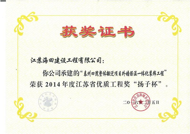 1. 2014年度江蘇省優(yōu)質(zhì)工程獎“揚子杯”獲獎項目名單